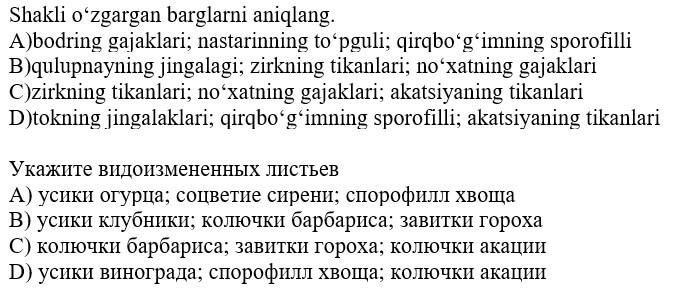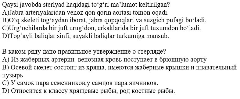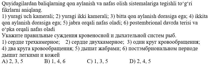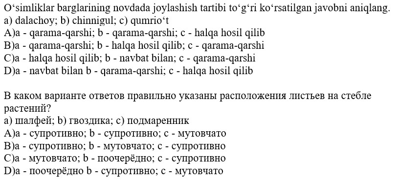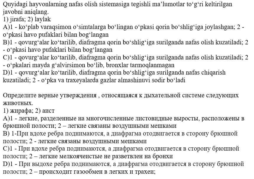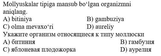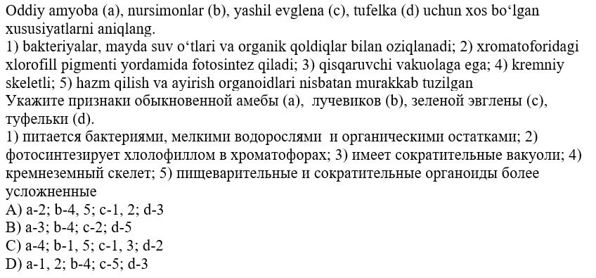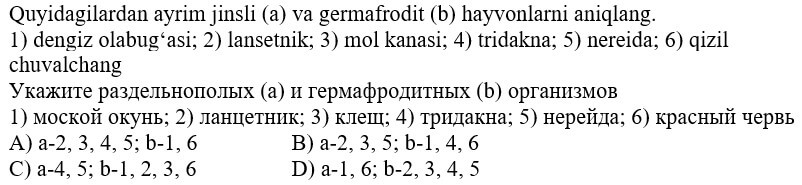 biologiya fanidan online olimpiada savollari