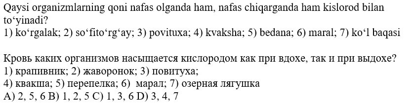 7-sinf biologiya fanidan online olimpiada