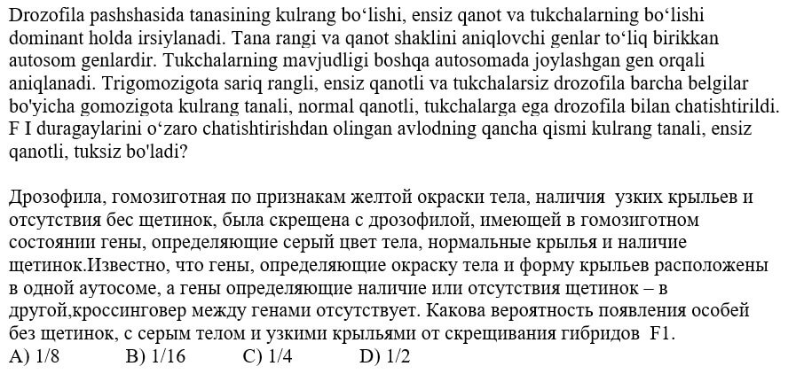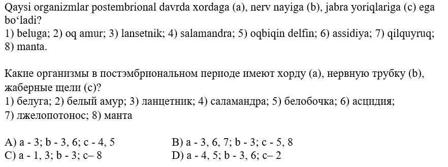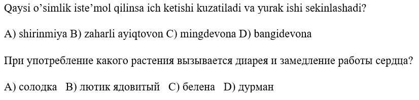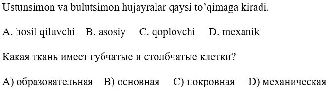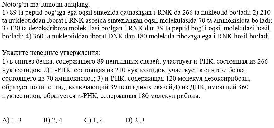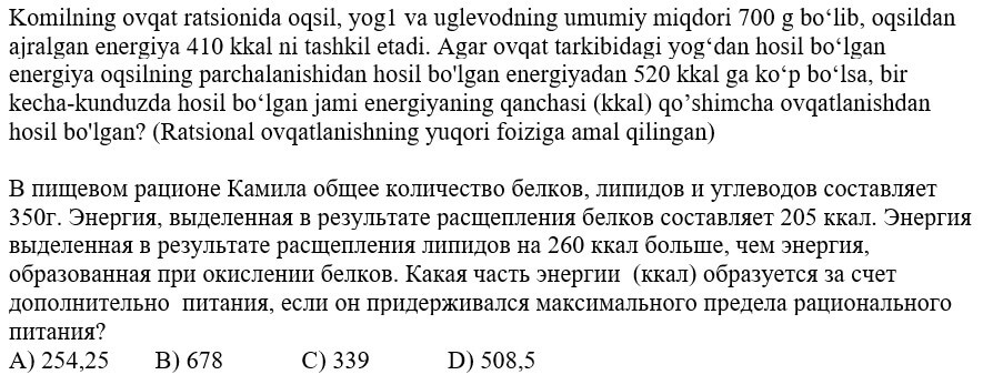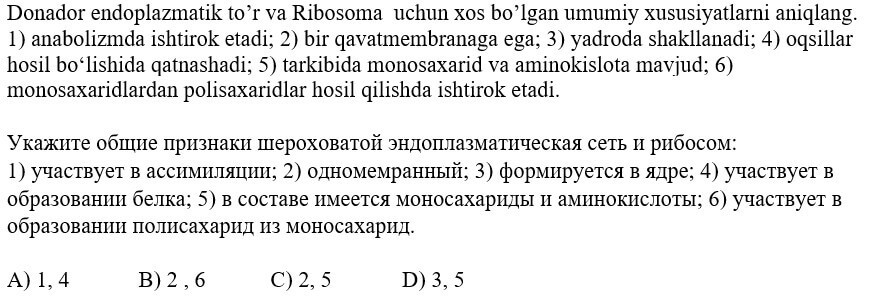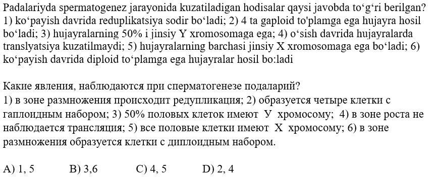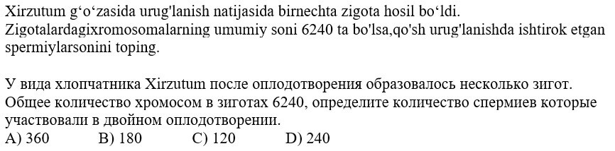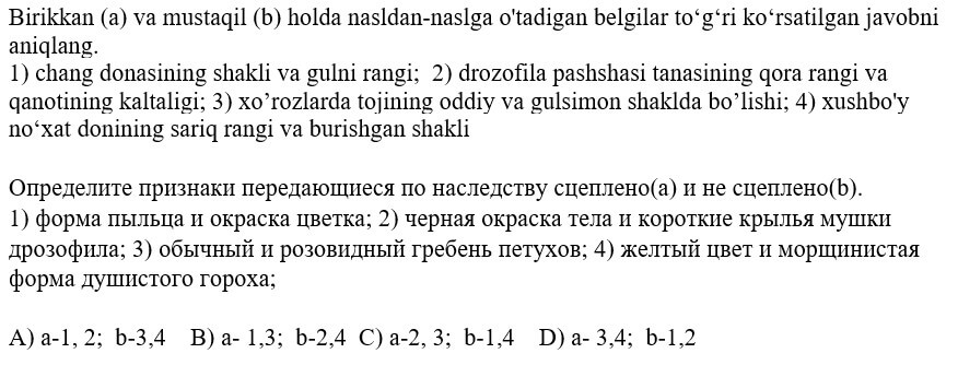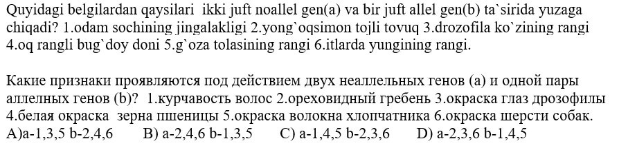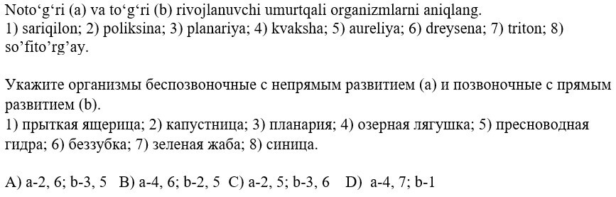 9-SINF BIOLOGIYA FANIDAN ONLINE OLIMPIADA SAVOLLARI