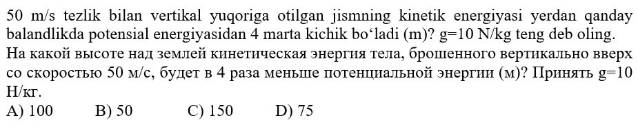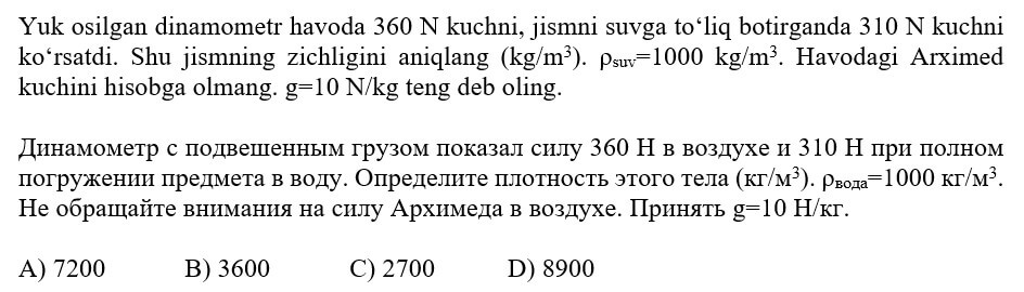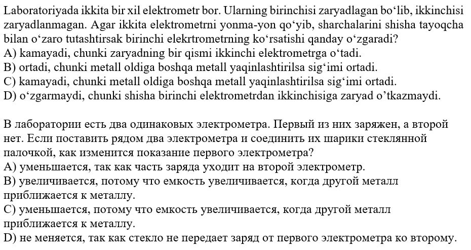 1234567891011121314151617181920 9-sinf fizika fanidan online olimpiada savollari 9-sinf o'quvchilari uchun fizika fanidan online olimpiada savollari Manba: oo.uzedu.uz Test savollar soni: 20 ta Bajarish uchun ajratilgan vaqt: 60 daqiqa Bellashuv.uz Barcha ma'lumotlarni to'g'ri kiriting. . A B C D . A B C D . A B C D . A B C D . A B C D . A B C D . A B C D . A B C D . A B C D . A B C D . A B C D . A B C D . A B C D . A B C D . A B C D . A B C D . A B C D . A B C D . A B C D . A B C D Facebook Twitter VKontakte 0% Перезапустить тест
