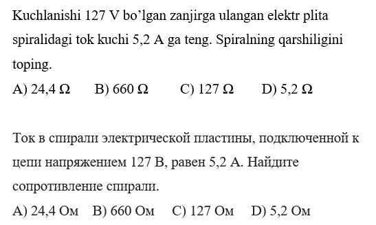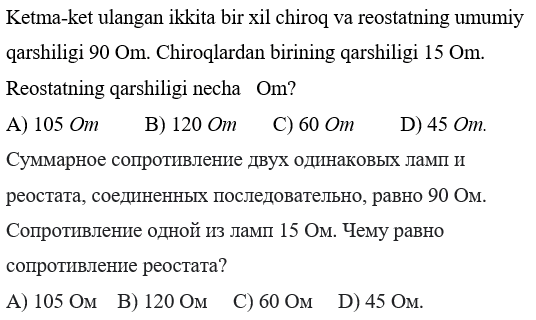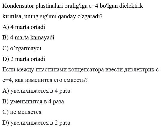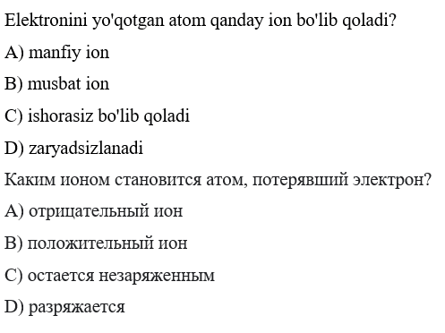 ?TEST SAVOLLARI ?? O'ZBEK HAMDA ??RUS TILLARIDA