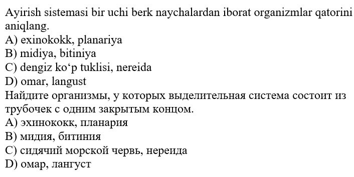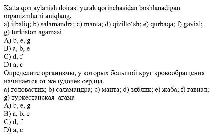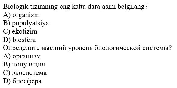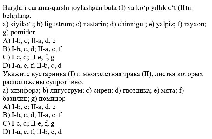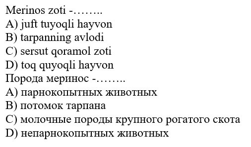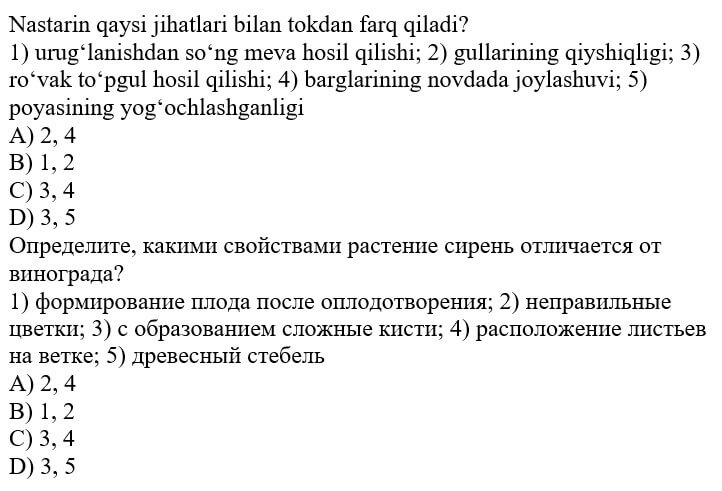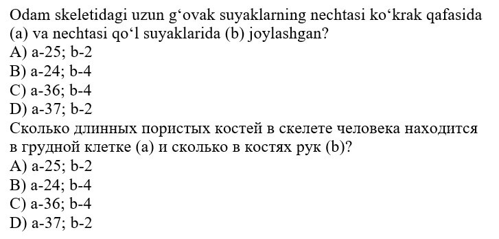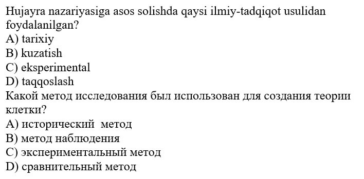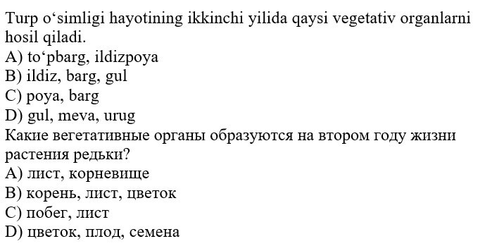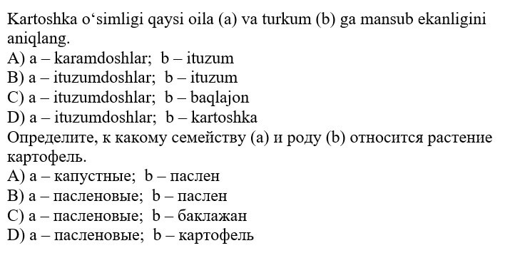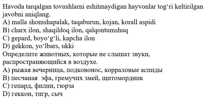 ?TEST SAVOLLARI ?? O'ZBEK HAMDA ??RUS TILLARIDA