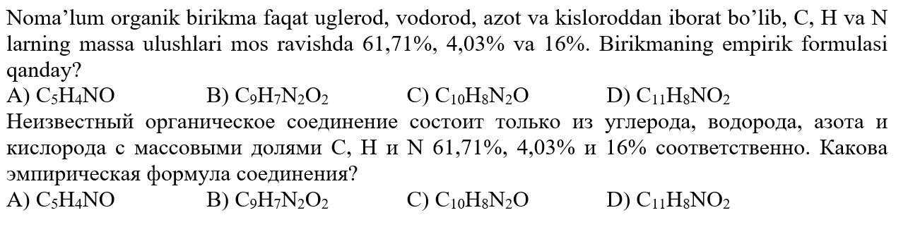 ?10-SINF O‘QUVCHILARI UCHUN KIMYO FANIDAN ONLAYN OLIMPIADA