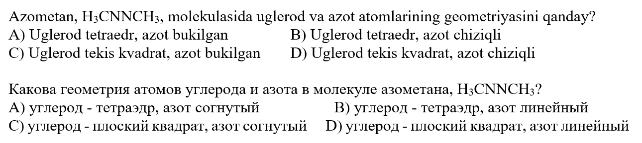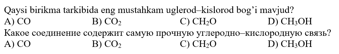 ?TEST SAVOLLARI ?? O'ZBEK HAMDA ??RUS TILLARIDA